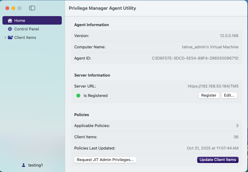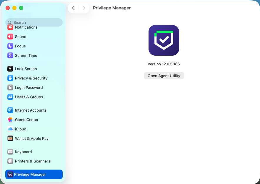 Open System Settings. Select Privilege Manager, then select Open Agent Utility.