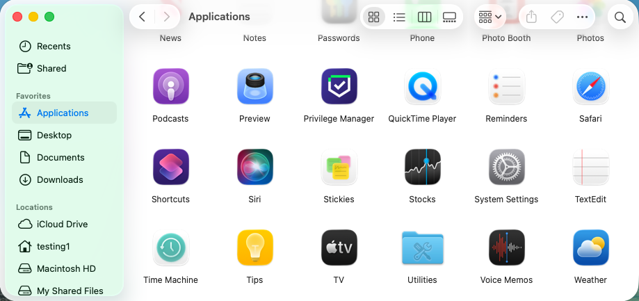 In the Finder, select the Applications folder and double-click the Privilege Manager icon.
