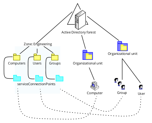 group, or computer serviceConnectionPoint objects also has a link back to its