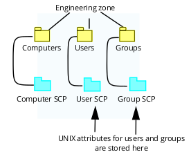 In a classic zone, the IBM Security and UNIX-specific attributes are separate from all of the other zones and from the base Active Directory objects for the users and groups. This enables delegated management of UNIX-related tasks, such as adding or removing UNIX profiles, within each zone.