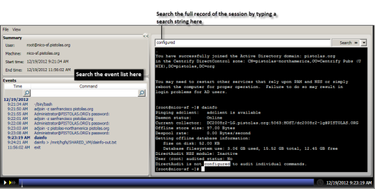 If you accepted the defaults when you created the installation for auditing, you should have video capture auditing enabled. Video capture auditing records all standard input (stdin), standard output (stdout), and standard error (stderr) activity that occurs on the managed computer. With video capture enabled, you can select a session, right-click, then select Replay to review the session in the session player.