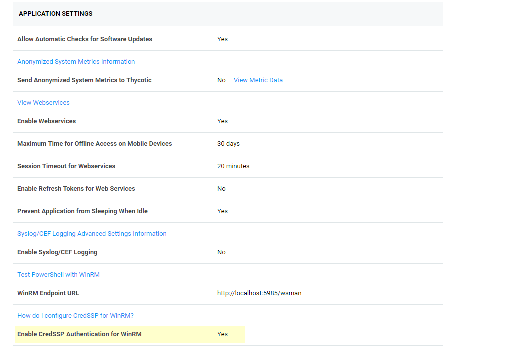 By default, Verify Privilege Vault agents inherit the "Enable CredSSP Authentication for WinRM" setting from Verify Privilege Vault; however, you can override this in the agent configuration file as follows: