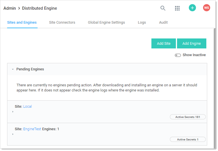 Go to Admin > Distributed Engine. The Distribute Engine Configuration page appears: