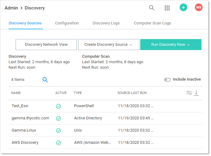Click Admin > Discovery. The Discovery Sources tab of the Discovery page appears: