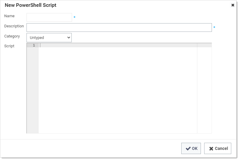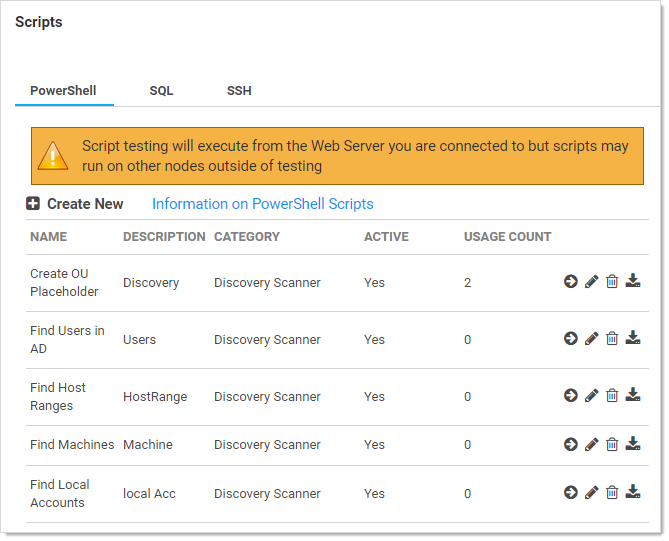 Go to Admin > Scripts. The PowerShell tab of the Scripts page appears:
