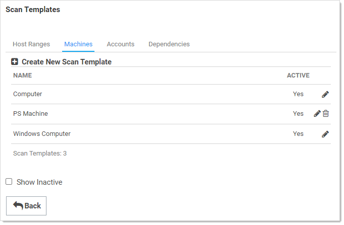 Now that you have defined the host range scanner, repeat the process for the machine scanner, PS Machines, with the appropriate secret. Repeat any advanced settings from the last scanner. Once you have added a machine scanner, you can add a local account scanner.