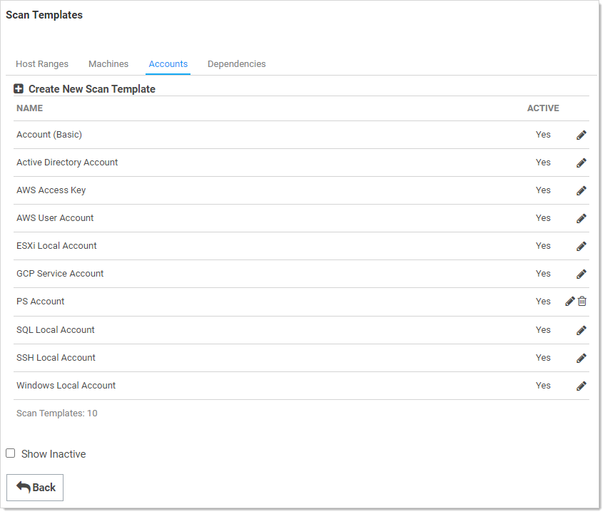 Repeat the process for the local account scanner, PS Accounts, with the appropriate secret. Repeat any advanced settings from the last scanner.