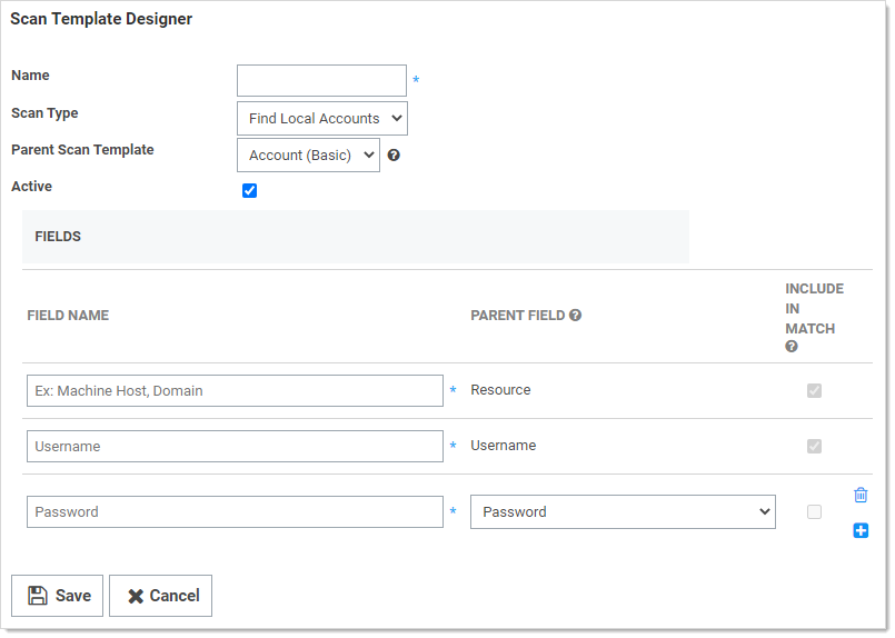 Click to select PS Organizational Unit in the Output Template dropdown list. This is the Host Range template we created in the previous section. Generally, each output template feeds a single scanner at the next level, but you can have multiple scanners using the same input template with each using the results to find different things. For example, you could have two local account scanners defined that both use the input from the previous find machines step—one for finding Windows local accounts and the other for finding AD accounts that have rights on the computer. In turn, each scanner returns its results to its own output scan template—one creating Windows account secrets and the other creating Active Directory account secrets.
