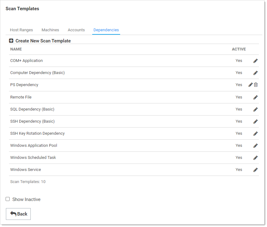 For simplicity, we will only create a Windows service dependency scanner in the dependencies step, but you can add additional built-in or custom PowerShell scanners to scan for application pools, scheduled tasks, or any other item that requires an action triggered when a secret's password is changed.