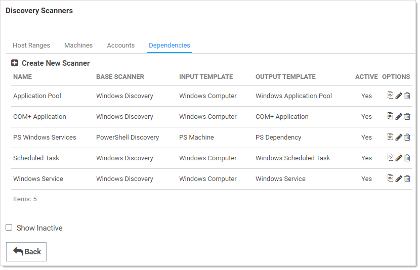 Click the Configure Discovery Scanners button. The Discovery Scanners page appears: