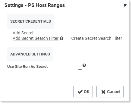 Click the + icon next to the PS Host Range scanner to select it. A settings popup for the scanner appears: