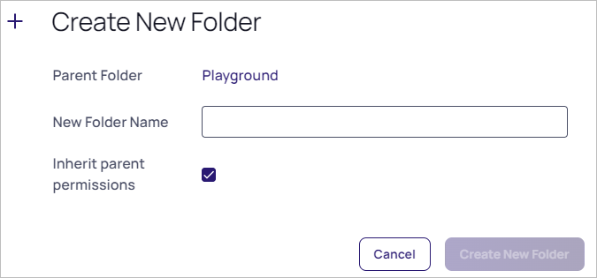 3. Right click the folder and select Add Subfolder. The Create New Folder popup appears: