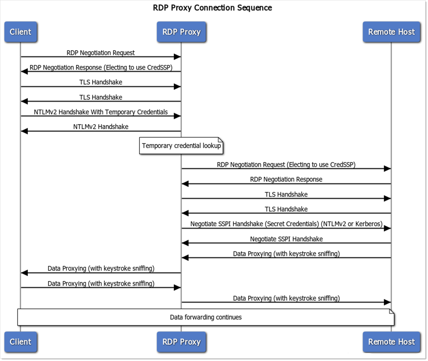 - Client machines must be able to use NTLMv2 to connect to the RDP proxy. The RDP proxy needs to retrieve the temporary credentials from the client machine in order to validate them, which is only possible using the NTLMv2 protocol and not Kerberos.