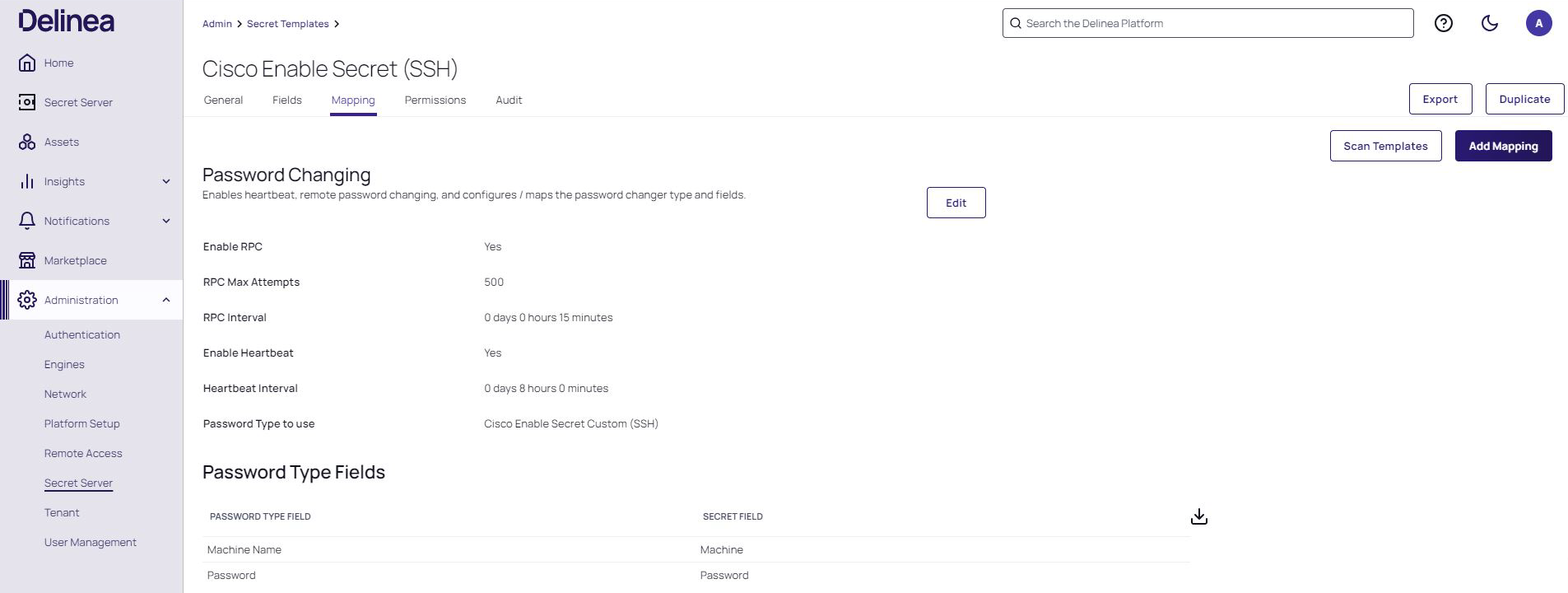 Select a Cisco Enable secret template and then click the Mapping tab.