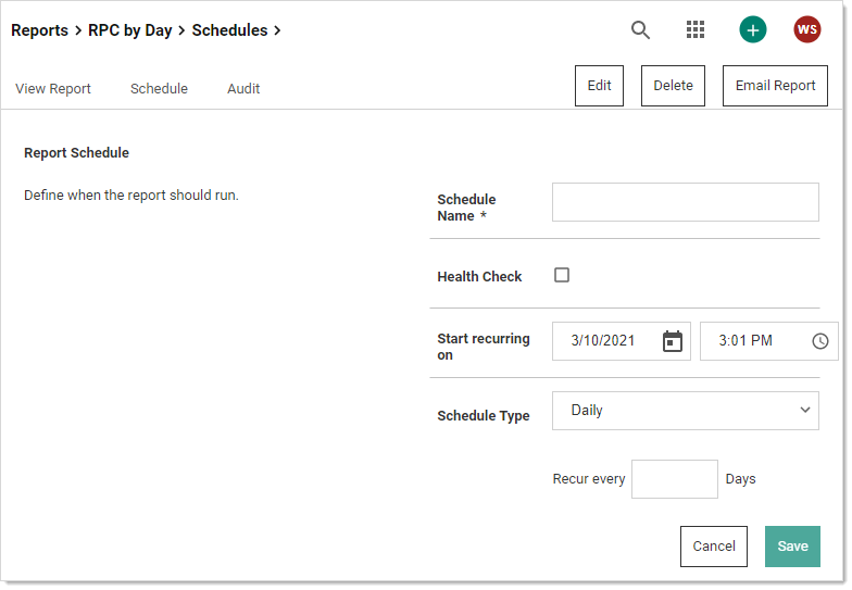 Creating New Schedules for Reports