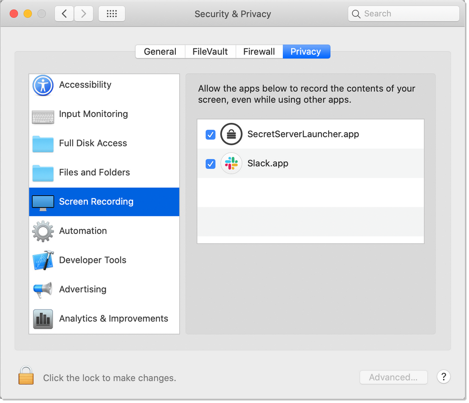 macOS Catalina enforces security policy around screen recording. To use the session recording feature of the IBM Security launcher on MacOS Catalina, you must first: