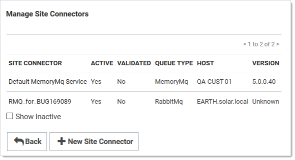 Click the Manage Site Connectors button. The Manage Site Connectors page appears: