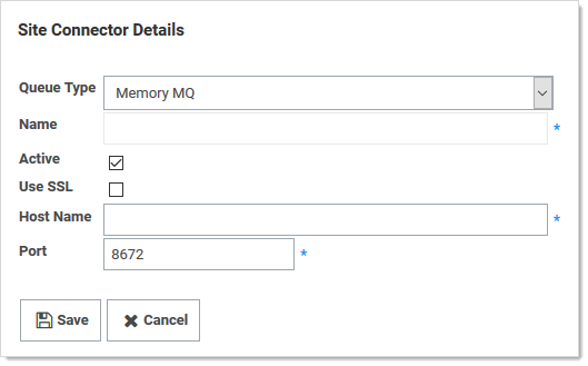 Click the + New Site Connector button. The Site Connector Details page appears:
