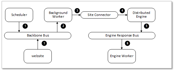 Messages are placed on the backbone bus by the Scheduler role and the website. Messages are retrieved from the backbone bus.