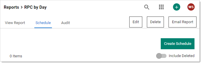 To view existing schedules for a report, click Schedule on the Report View screen. A list of existing schedules for the report appear in the grid.