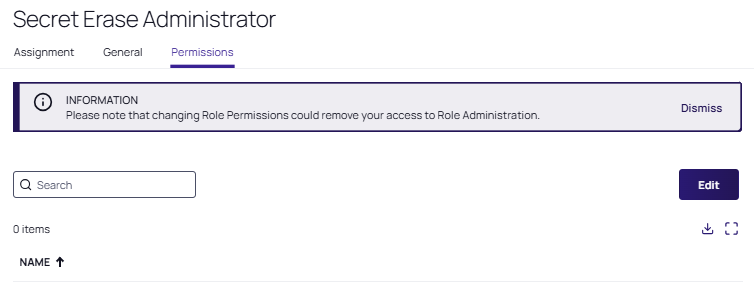 This role permission allows users with the role to create secret erase requests and view secret erase administration pages. -