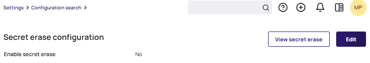 Choose from the dropdown list Secret Erase Request and click the Save button. Secret Erase is now set up.