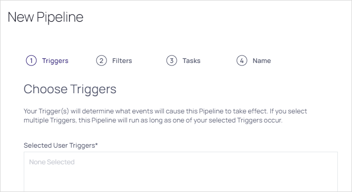Click the Create button. The New Pipeline wizard appears on the Choose Triggers page: