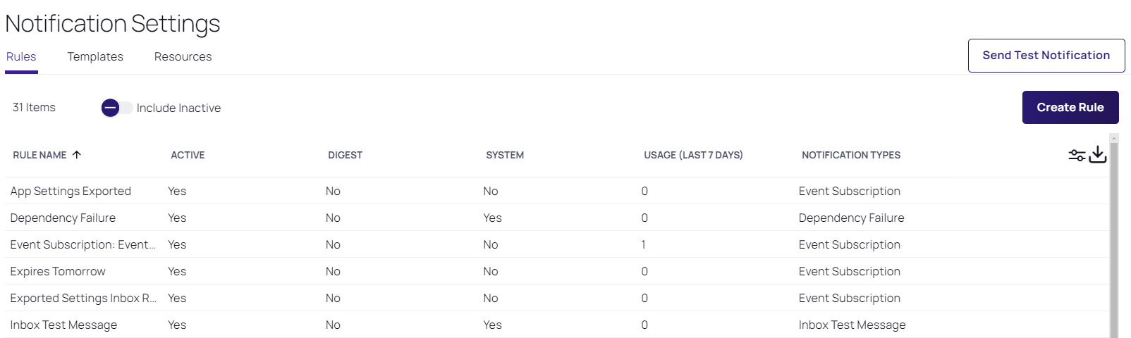 Select Admin > Notification Rules and Templates The Notification Settings page appears: