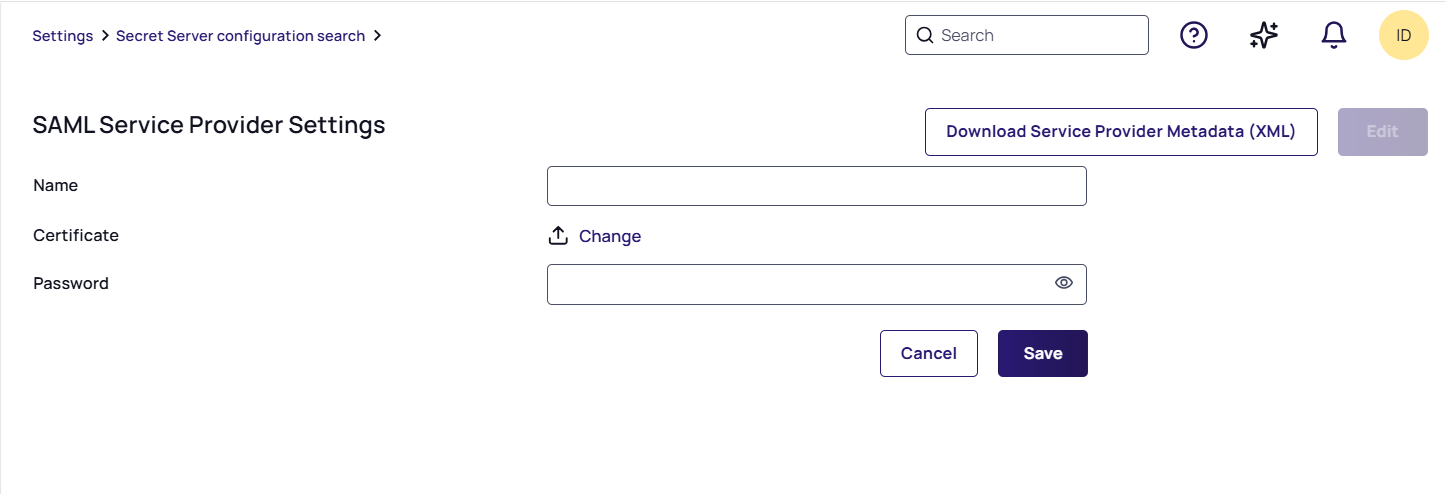 SecretServerSAMLMetatdata.xmlfile. This file is needed when setting up SAML on your Identity Provider. -