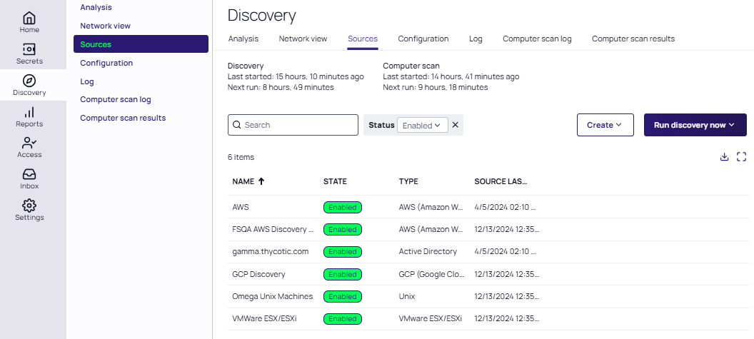 In the left-hand menu select Discovery > Sources. The Discovery Sources tab appears: