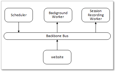 Messages are placed on the backbone bus by the Scheduler role and the website. Messages are retrieved from the backbone bus.