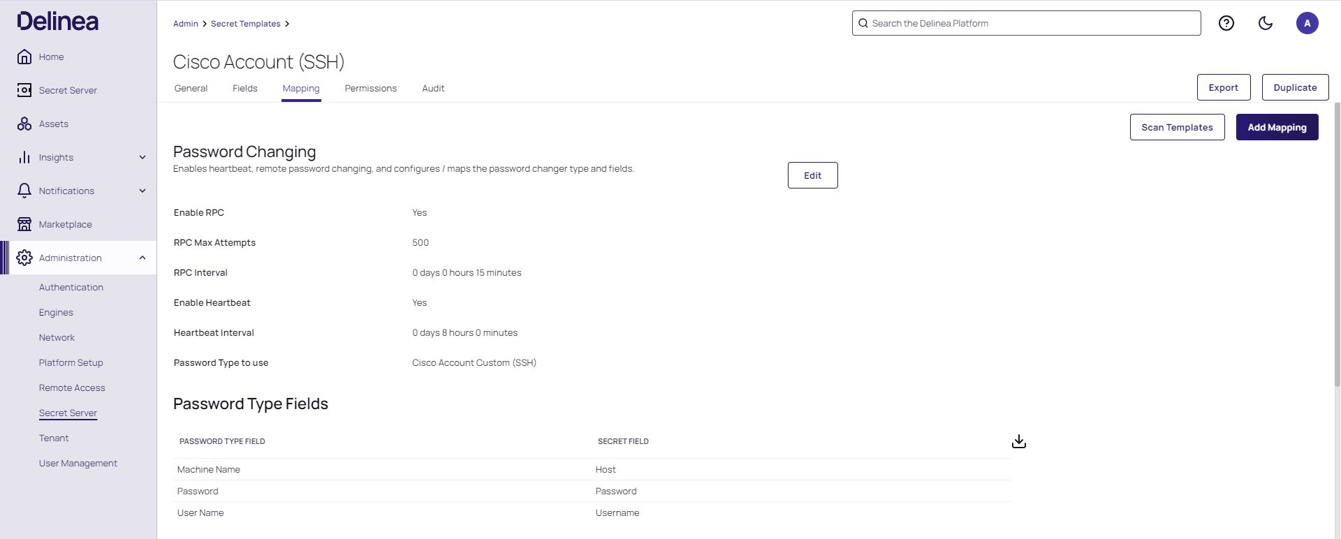 Select a Cisco Account secret template and then click the Mapping tab.