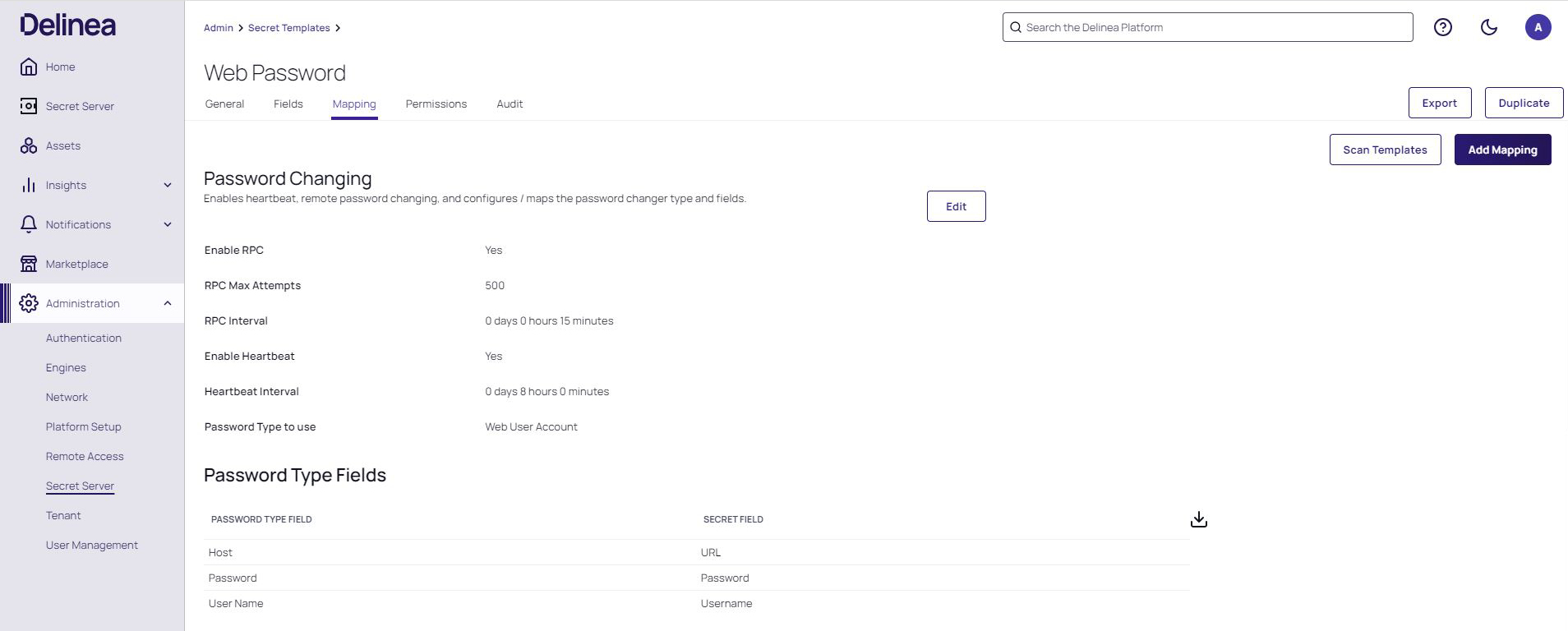 Select a Web Password secret template and then click the Mapping tab.