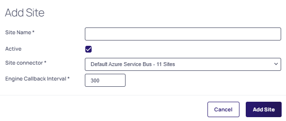 Add a Site Name, select the Active checkbox and leave the Engine Callback Interval at the default 300 value.